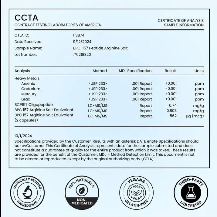 Yes. Re + (BPC-157) is lab-tested, non-GMO, gluten- and lactose-free, and made to pharmaceutical standards.